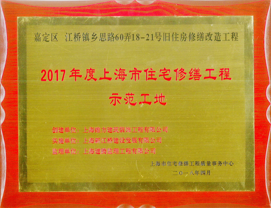 上海維方兩項(xiàng)目喜獲2017年度示范工地稱號(hào)