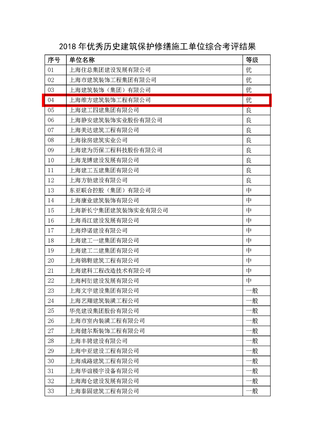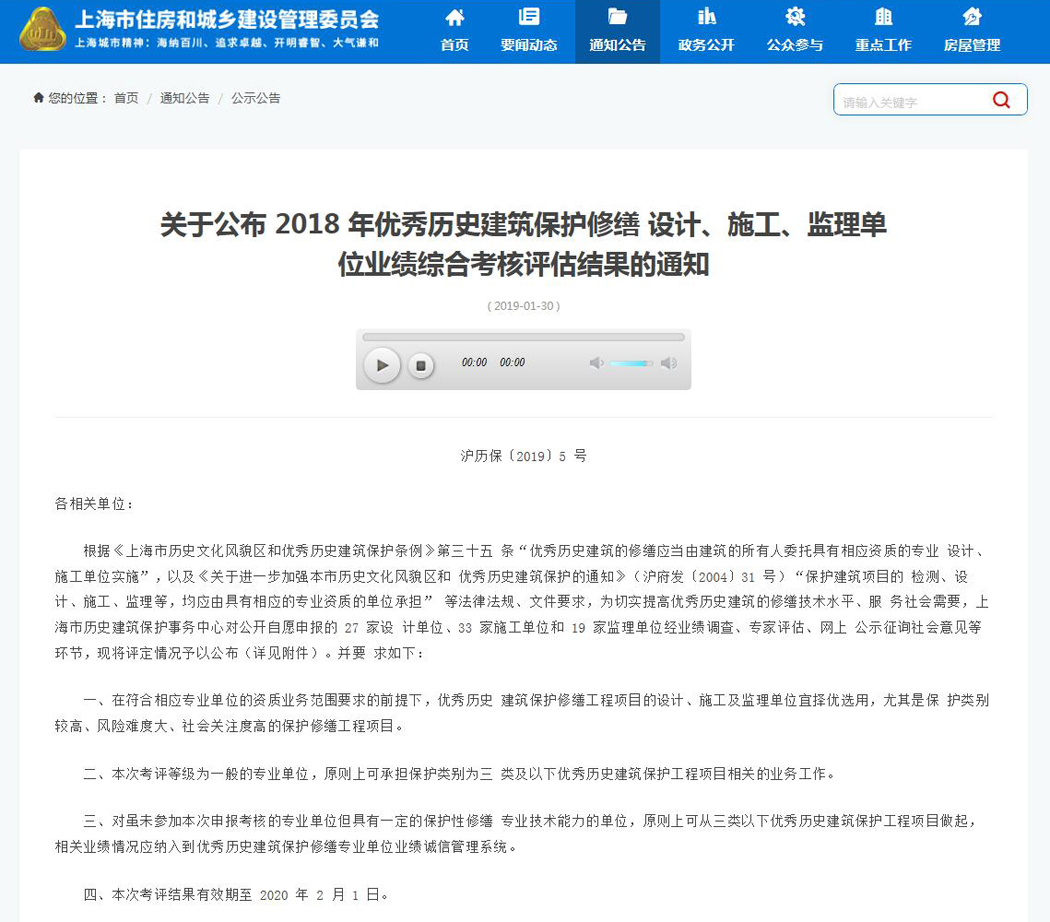 上海維方公司榮獲“2018年優(yōu)秀歷史建筑保護(hù)修繕施工考評(píng)”優(yōu)級(jí)單位