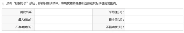 6.根據移液器校準指南操作,讀取天平讀數,輸入下示表格,并點擊藍色按鈕“數據分析”。