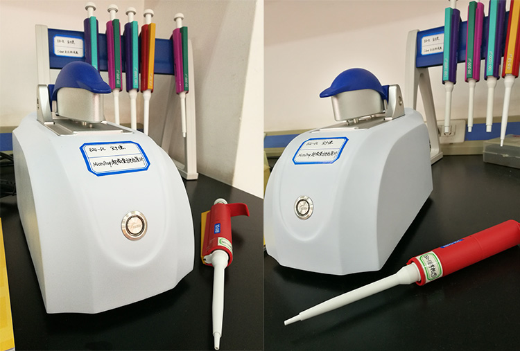 (2)移液器吸頭插入液面下吸取樣品,可避免吸入氣泡;TIP頭貼著下光纖表面打出樣品,且只按到移液器第一擋盡頭,第二擋不要按,可以避免吹出氣泡到樣品中。