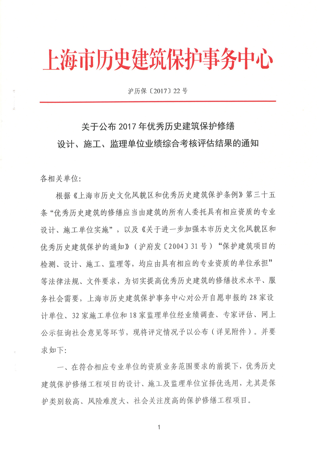 上海維方建筑獲評2017年優(yōu)秀歷史建筑保護(hù)修繕優(yōu)級單位
